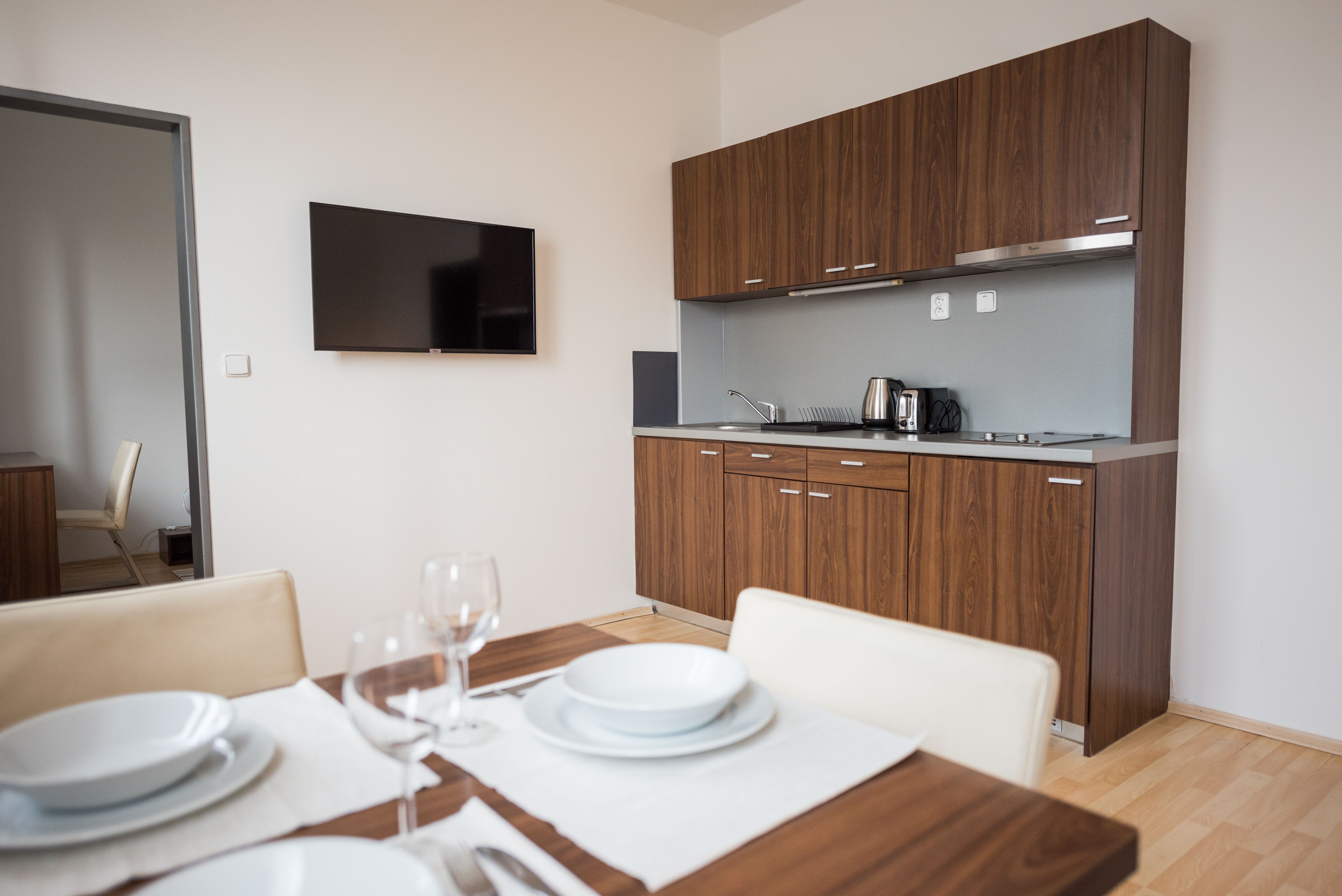 Vybavení je řešeno jako víceúčelové s možností dlouhodobého pronájmu jak pro studenty, mladý pár tak jako pronájem pro firmy pro zaměstnance.