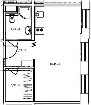 Vybavení je řešeno jako víceúčelové s možností dlouhodobého pronájmu jak pro studenty, mladý pár tak jako pronájem pro firmy pro zaměstnance. Vnitřní vybavení je řešeno standardně tj. plovoucí podlaha, plastová okna, žaluzie, velká šatna, koupelna - sprchový kout, toaleta, umyvadlo. V obytné místnosti je kuchyňský kout s linkou a zabudovanými spotřebiči (lednice, pračka, el. varná sklokeramická deska, digestoř). Obývací pokoj je vybaven dvěma postelemi s úložným prostorem a nočním stolkem, křeslami, konferenčním dvojstolkem, jídelním stolem, pracovním stolem nebo komodou a TV sestavou. Vybavení se může lišit dle velikosti bytu.